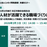 2026年2月19日 / 最終更新日 : 2026年2月19日 kaku 【Webライブ配信】高年齢人材が活躍できる職場づくりのポイント セミナー概要 日本で働く65歳以上の方は914万人、就業者総数の13.5%を占めるまで増加しています(2024年9月15日総務省発表)。深刻な人手不足のもと、企業における高齢者の活躍機会はますます増えると予想されます。一 […]